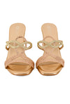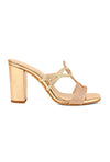 Step in and shine from the get go! These slip-on heeled sandals shimmer with a mix of gold and rose-gold crystals, set in an intricate patterned upper. A tall block heel and cushioned insole keep the glamour grounded in comfort.