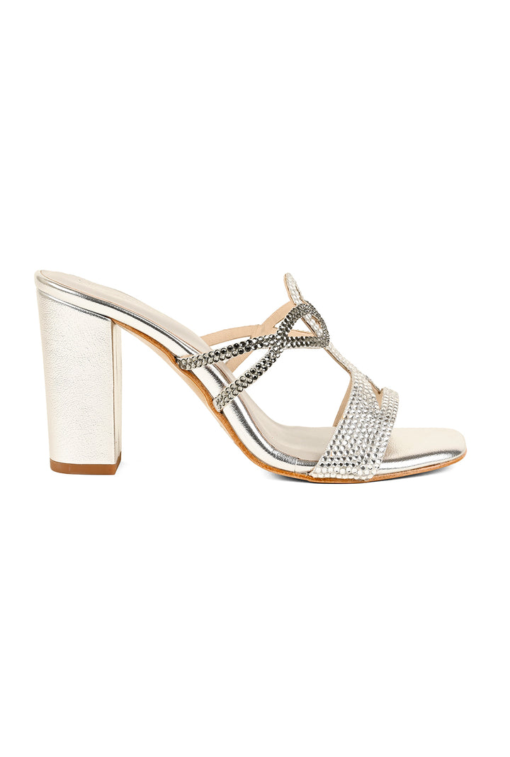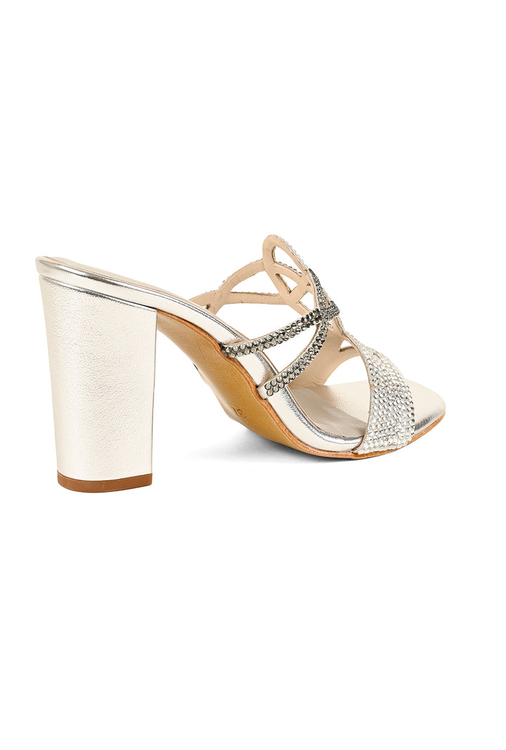Step in and shine from the get go! These slip-on heeled sandals shimmer with a mix of pewter and silver crystals, set in an intricate patterned upper. A tall block heel and cushioned insole keep the glamour grounded in comfort.