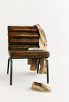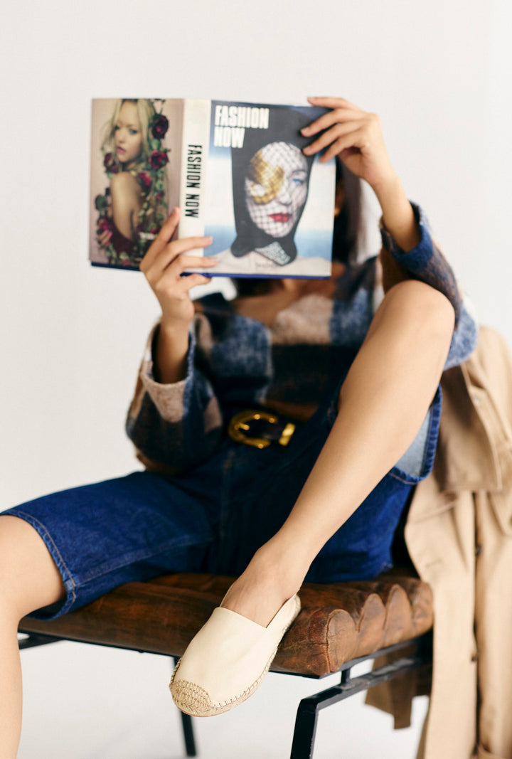 Slip into comfort with these espadrilles that blend tradition and modernity. Featuring a classic espadrille sole and a jute-woven toe cap, these shoes capture the essence of Spanish craftsmanship. The innovative design allows the back part to fold down, transforming them into a chic slip-on mule. Available in black, gold-bronze and off-white, these babies are perfect for effortless versatility!
