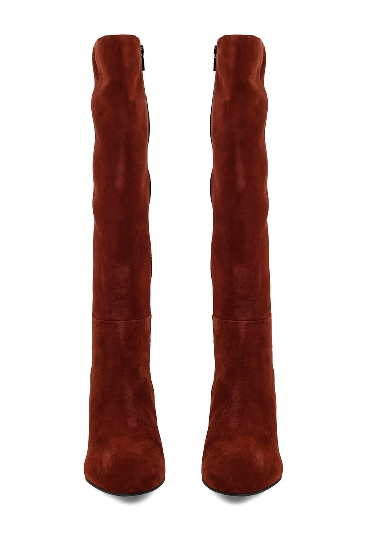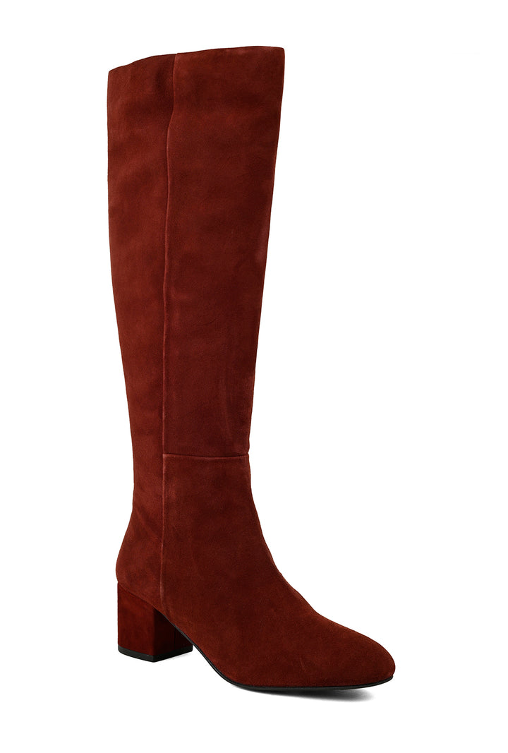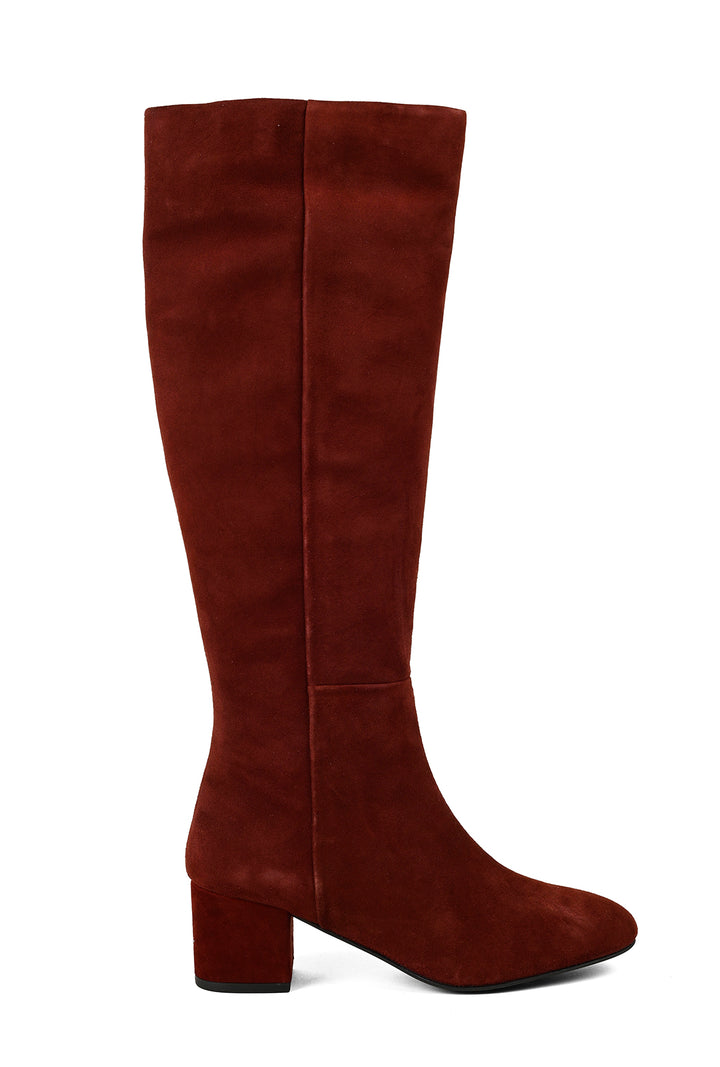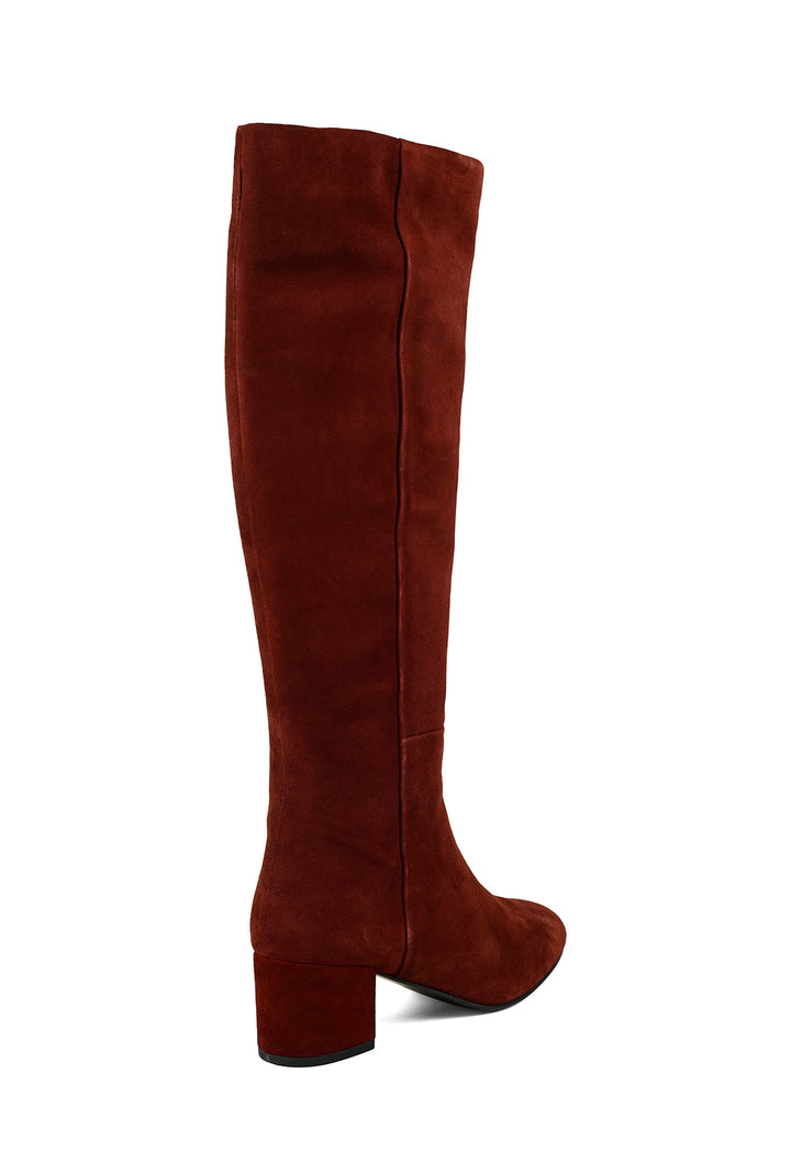 A timeless, tall silhouette in the most striking maroon suede. Crafted from supple suede, this classic high-leg boot rests on a comfortable block heel that balances elegance with ease. Refined yet versatile, it’s the perfect boot to carry you effortlessly from daywear to evening polish.