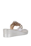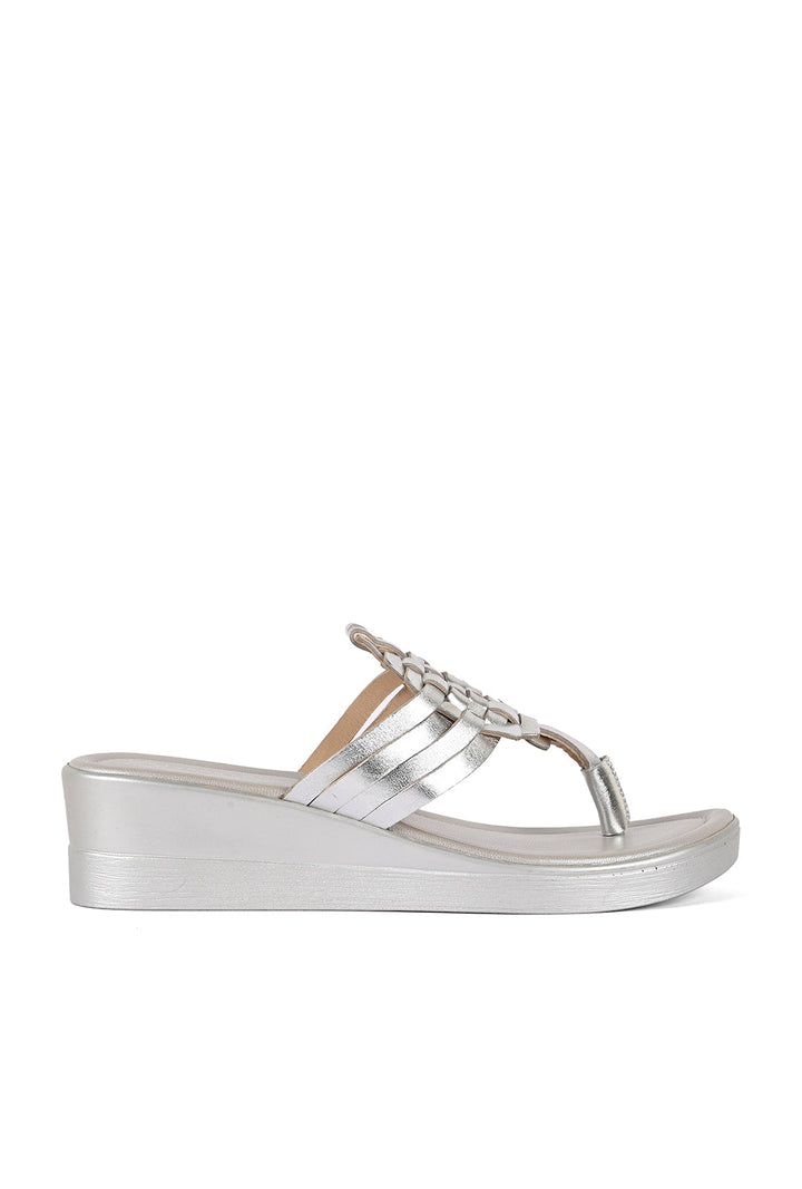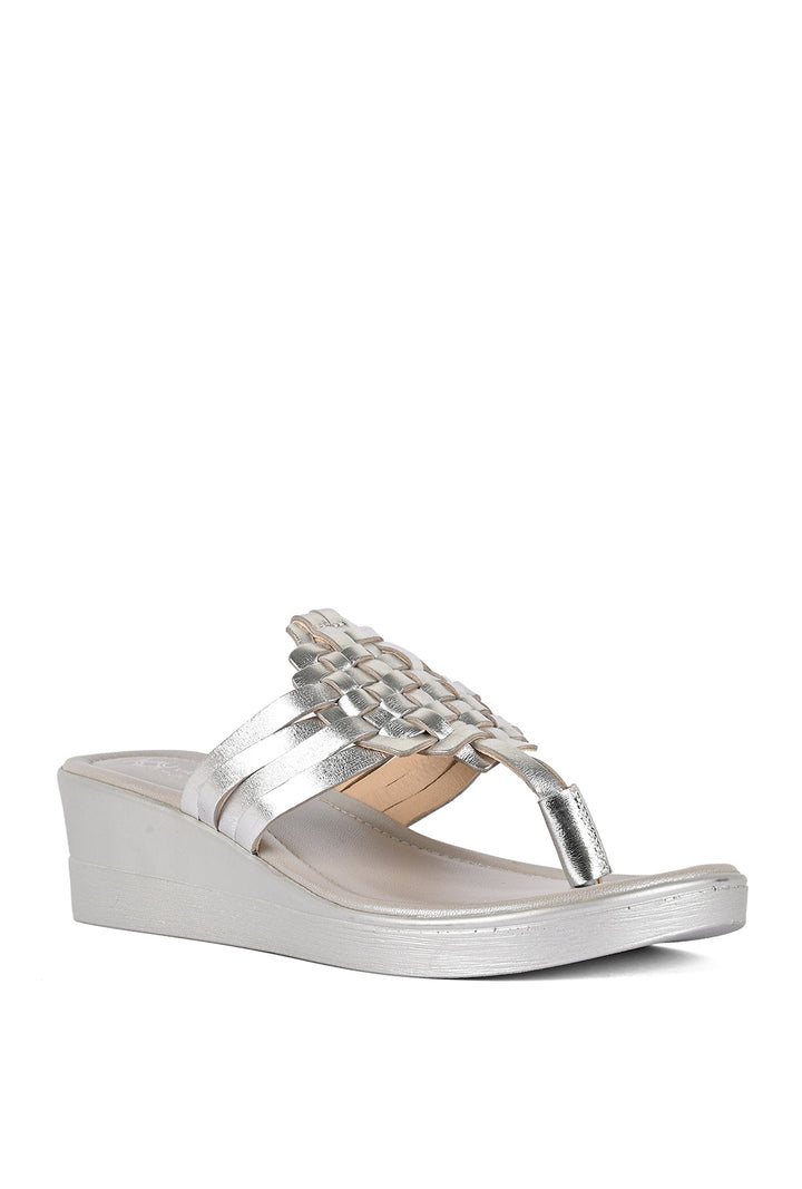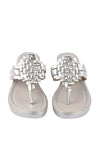 Laced with pizzazz and poise, these silver toe post wedges with interlaced detail have a padded sole for comfort and are a great addition to your everyday style!