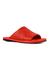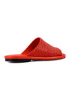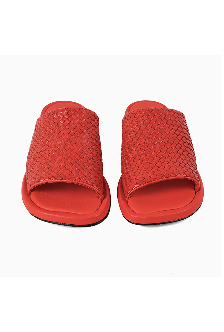 Where texture meets form. These fiery red basket weave flat sliders feature a clean square toe and a padded inset insole for comfort. Finished with a leather sole, they bring understated JVAM style to everyday dressing.