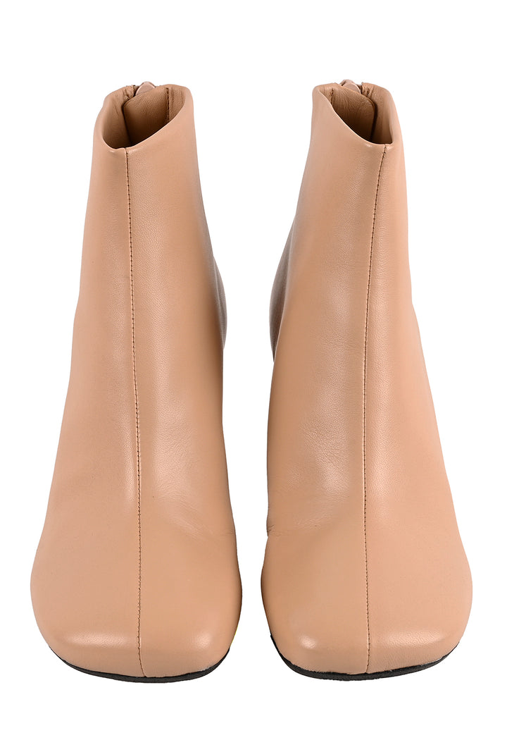 This beige JVAM ankle boot is crafted in glove construction with a central stitch detail and a waterproof back-zip for sleek functionality. The square toe and matching high-gloss cylinder heel add a clean, contemporary finish, while the anti-skid leather sole ensures comfort.