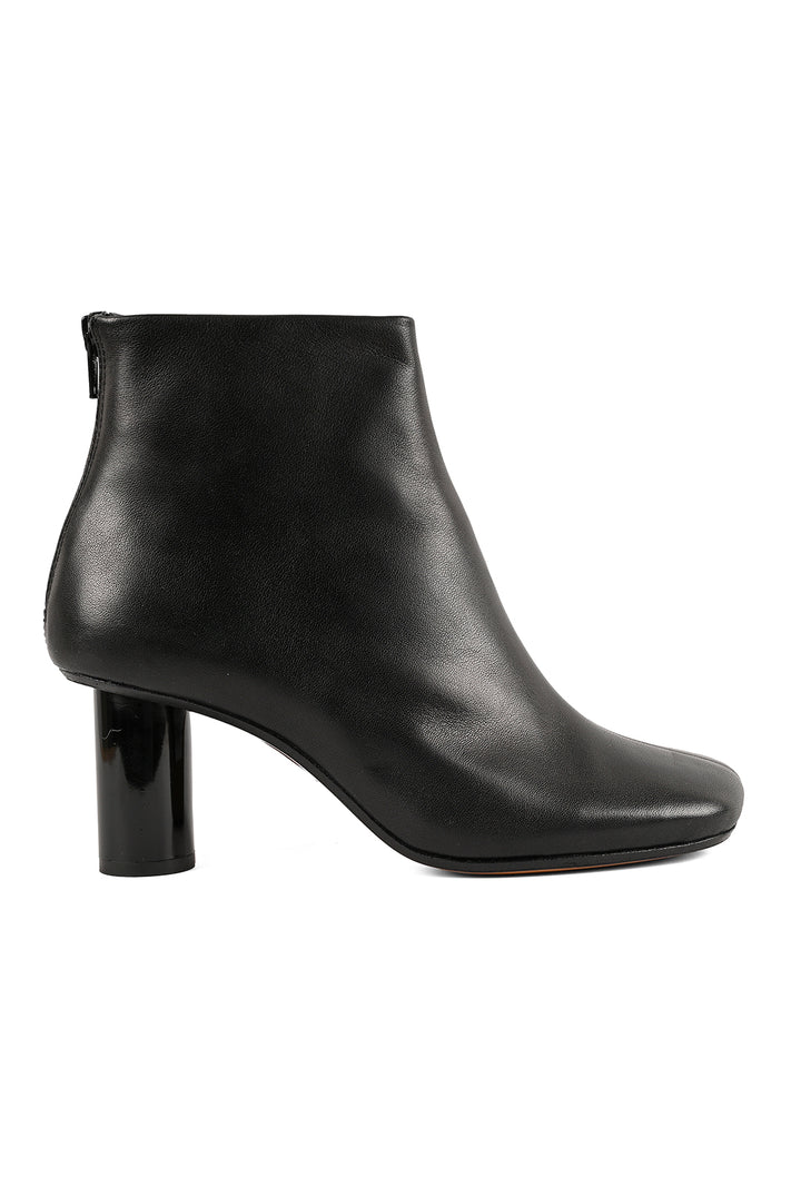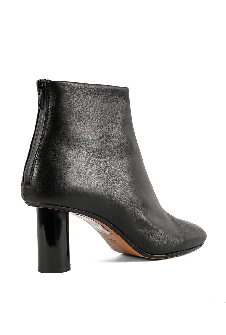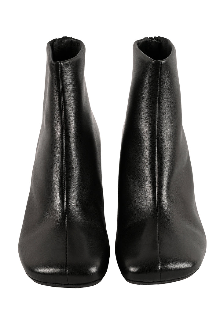 This black JVAM ankle boot is crafted in glove construction with a central stitch detail and a waterproof back-zip for sleek functionality. The square toe and matching high-gloss cylinder heel add a clean, contemporary finish, while the anti-skid leather sole ensures comfort.