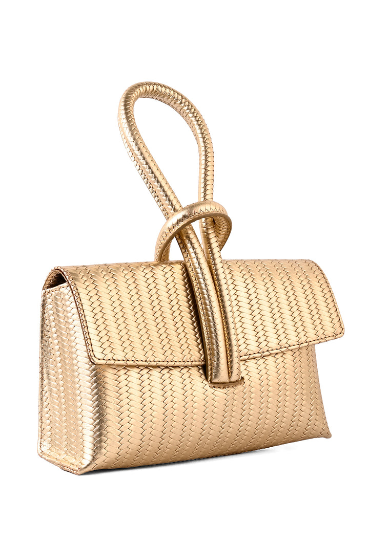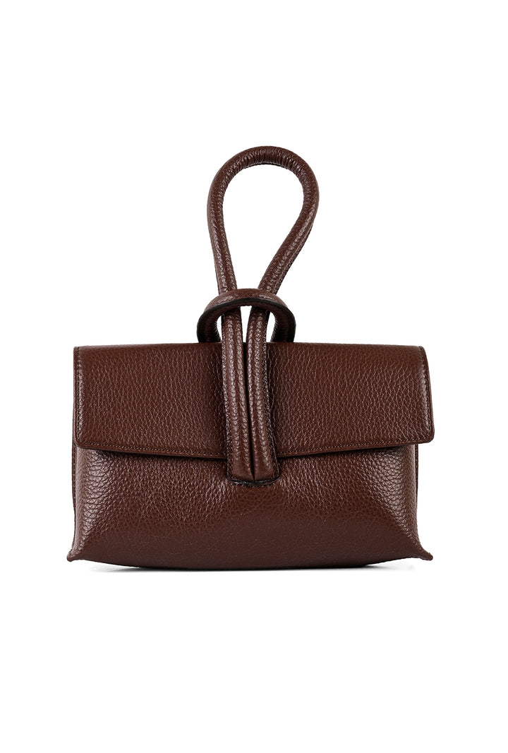 This knotted wristlet handbag in leather is the perfect blend of elegance and convenience. Its rectangular, compact design makes it an ideal evening bag, offering just enough space to carry all your essentials needed for a stylish night out. Whether you're heading to dinner or a night out on the town, this stylish handbag is the ultimate accessory for any occasion.