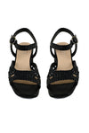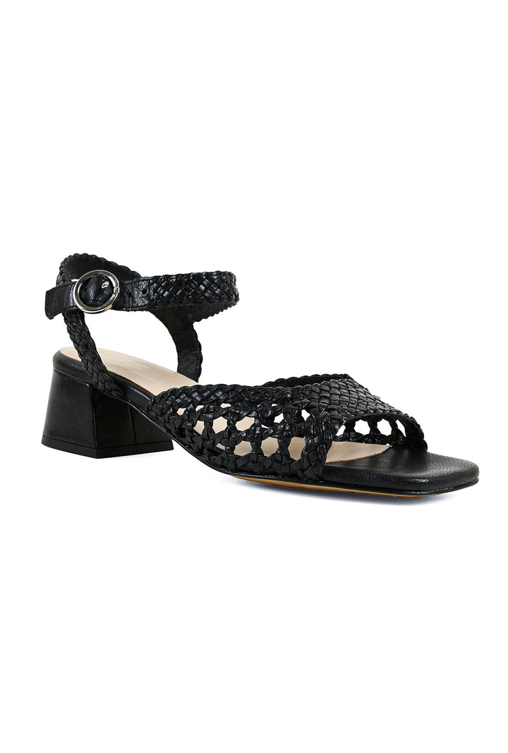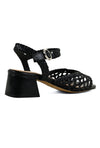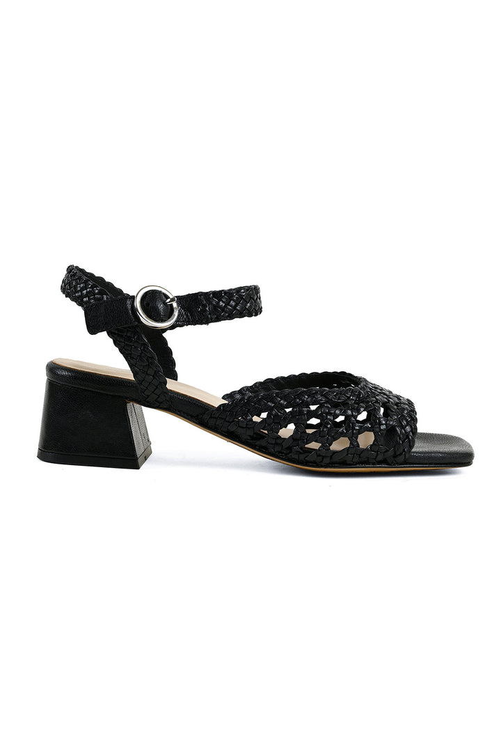 Step into a new era of chic! These black handwoven sandals bring playful texture with a braided backstrap and a chic square toe, while a flared leather-covered heel adds just the right lift for all-day ease.