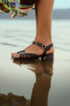 Step into a new era of chic! These black & gold handwoven sandals bring playful texture with a braided backstrap and a chic square toe, while a flared leather-covered heel adds just the right lift for all-day ease.