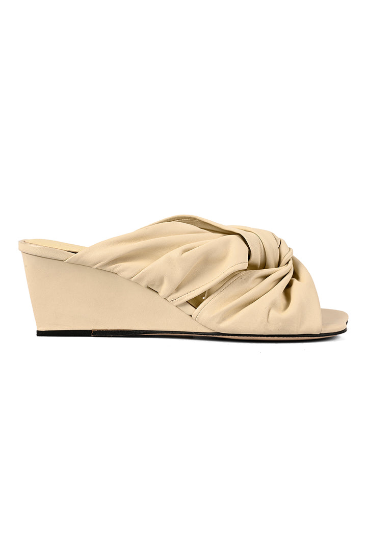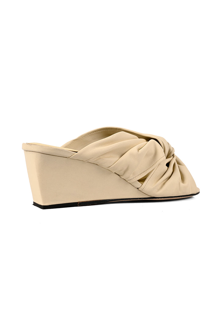 Soft leather with a sculpted edge. These ivory square-toe slip-on wedges feature an interlocked upper and a clean, modern profile. Finished with a leather sole, they deliver understated JVAM style with everyday ease.