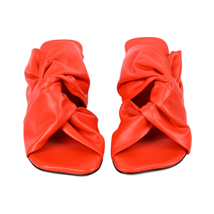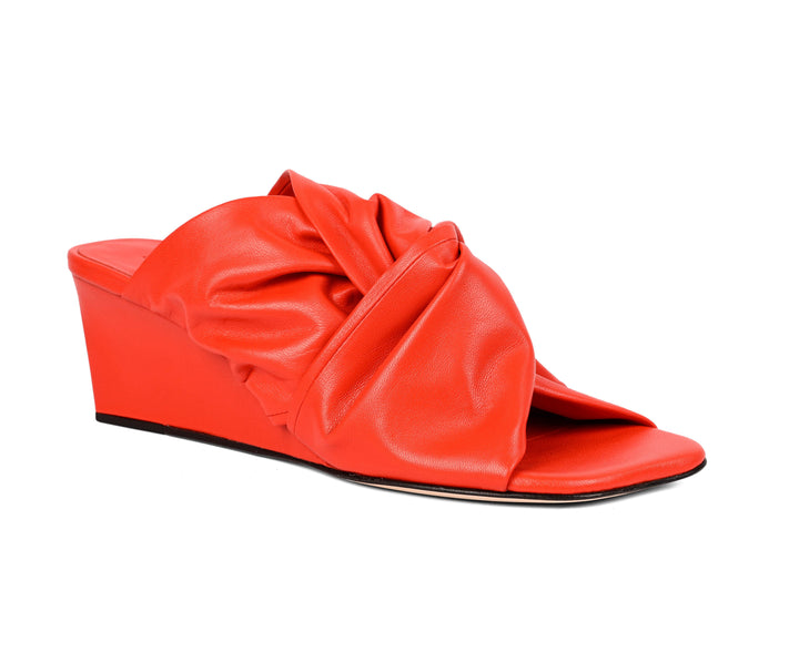 Soft leather with a sculpted edge. These fiery red square-toe slip-on wedges feature an interlocked upper and a clean, modern profile. Finished with a leather sole, they deliver understated JVAM style with everyday ease.