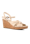 Playful yet polished, these off-white cork covered wedges with a supportive backstrap, feature a knotted upper that forms a perfect square with soft leather folds. The round toe, cork-covered wedge and anti-skid sole make them endlessly comfortable.