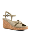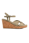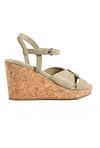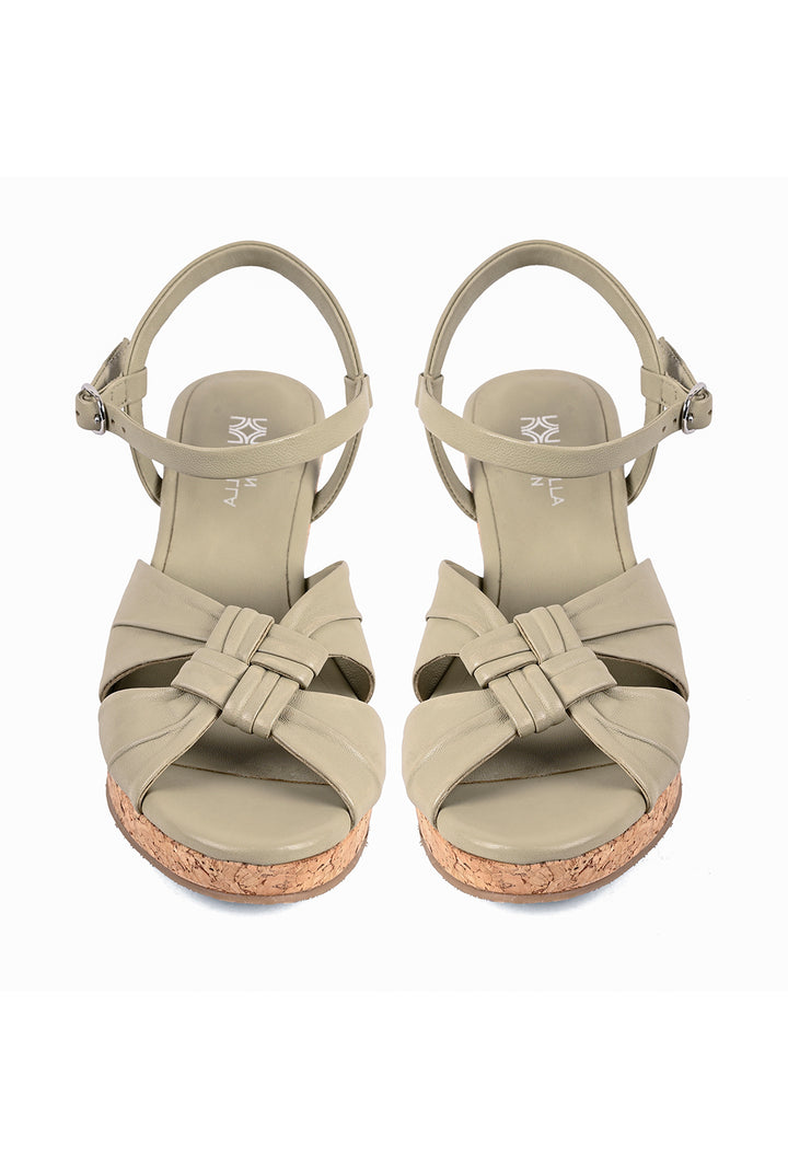 Playful yet polished, these green cork covered wedges with a supportive backstrap, feature a knotted upper that forms a perfect square with soft leather folds. The round toe, cork-covered wedge and anti-skid sole make them endlessly comfortable.