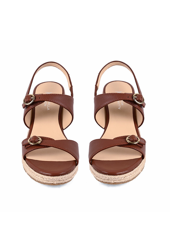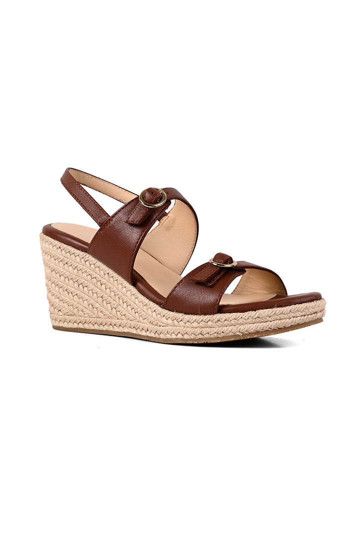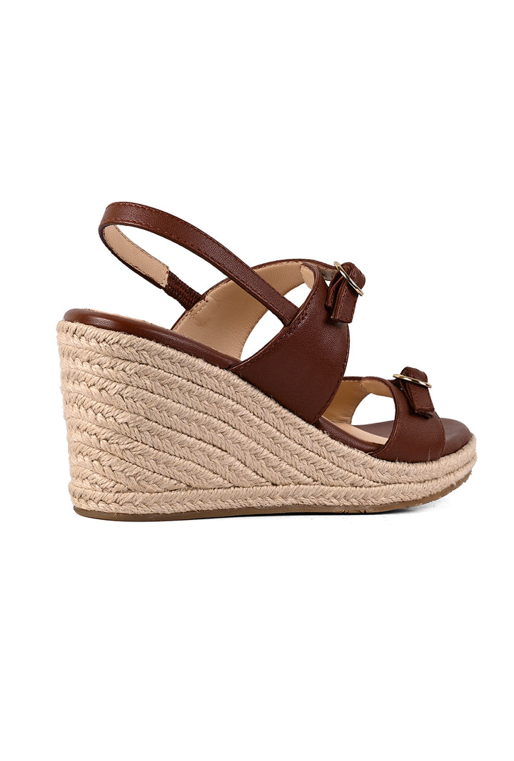 A touch of shine meets laid-back sophistication. These rich tan espadrille wedges feature a printed leather upper with belt-inspired straps and small gold buckles for a fully adjustable fit. An elasticated backstrap ensures comfort, while the woven wedge adds texture and subtle elegance.