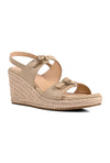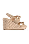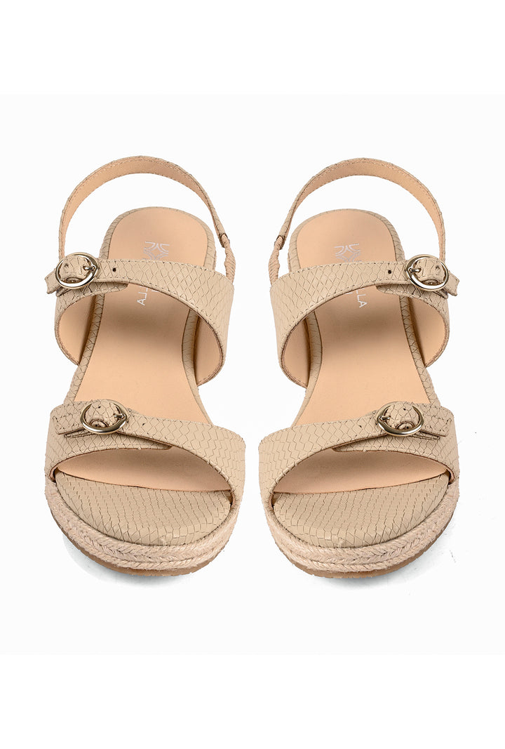 A touch of shine meets laid-back sophistication. These beige espadrille wedges feature a printed leather upper with belt-inspired straps and small gold buckles for a fully adjustable fit. An elasticated backstrap ensures comfort, while the woven wedge adds texture and subtle elegance.