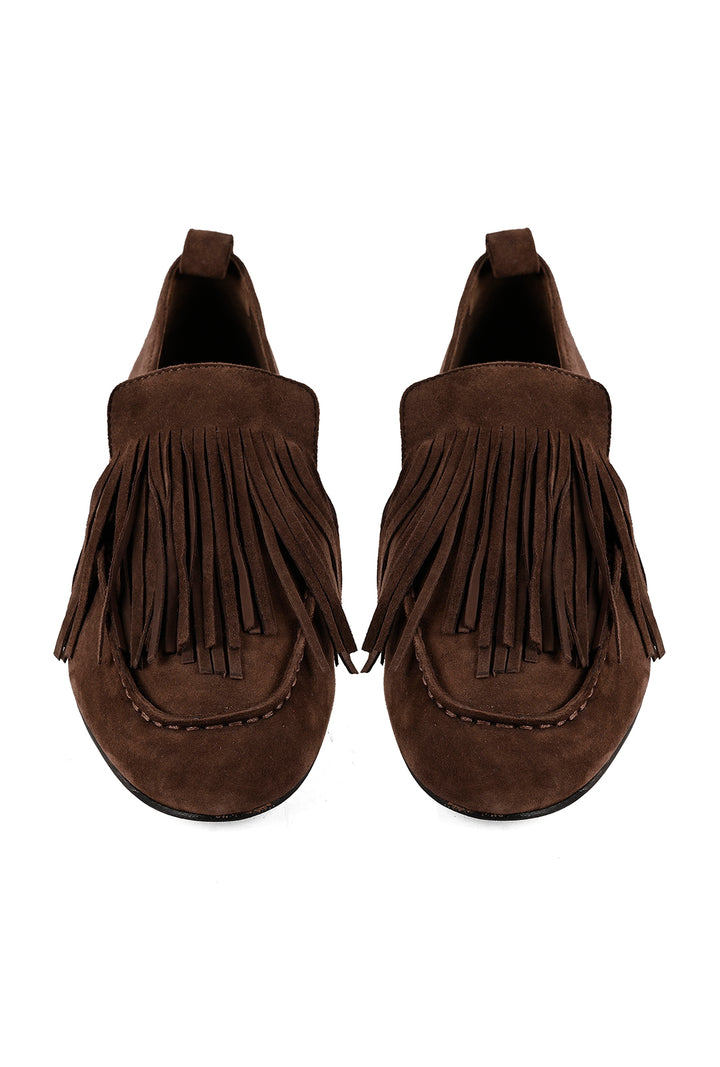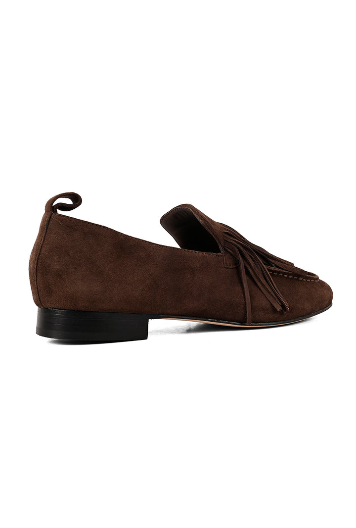 Understated with a touch of movement. These flexible loafers are crafted in soft cocoa suede using sacchetto construction for a supple, glove-like fit. Fringe tassels and stitch detailing add character, while a leather sole completes the refined JVAM look.