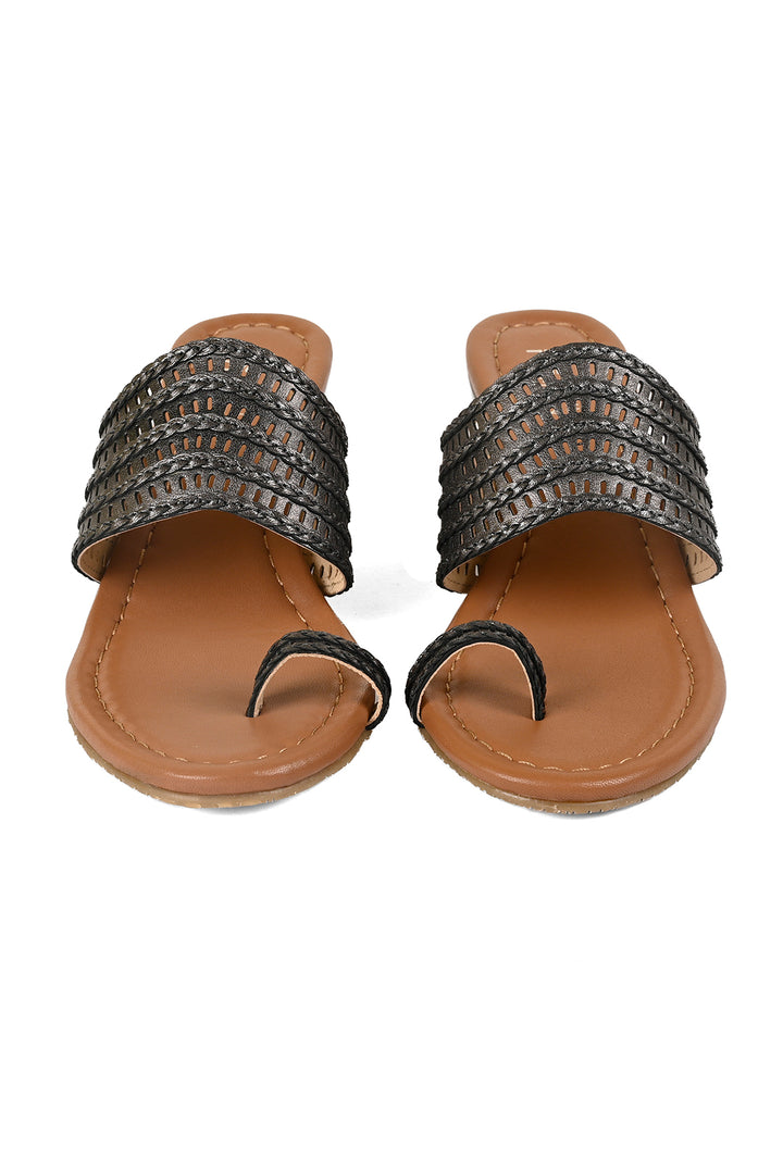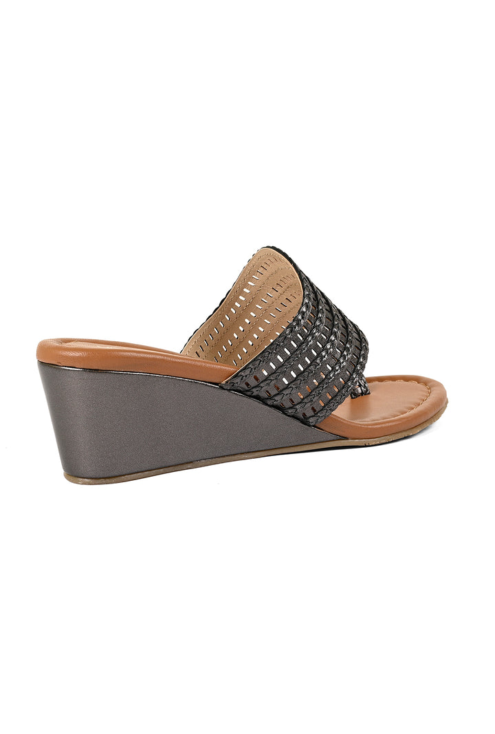 A little drama, a lot of comfort! These pewter laser-cut toe-ring wedges flaunt a bold cutwork wavy band and a cushioned sock for an extra comfy feel. Chic, unique, and ready to turn heads!