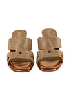High octane shine! These bronze crystal slip-ons dazzle with their sparkle, set on a dramatic flared block heel. Finished with a plush padded insole, they’re made for dancing through every celebration in comfort and style.
