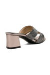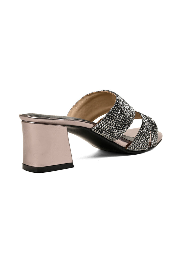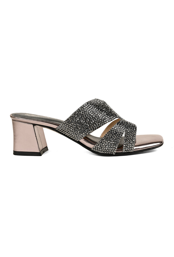 High octane shine! These pewter crystal slip-ons dazzle with their sparkle, set on a dramatic flared block heel. Finished with a plush padded insole, they’re made for dancing through every celebration in comfort and style.