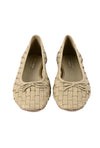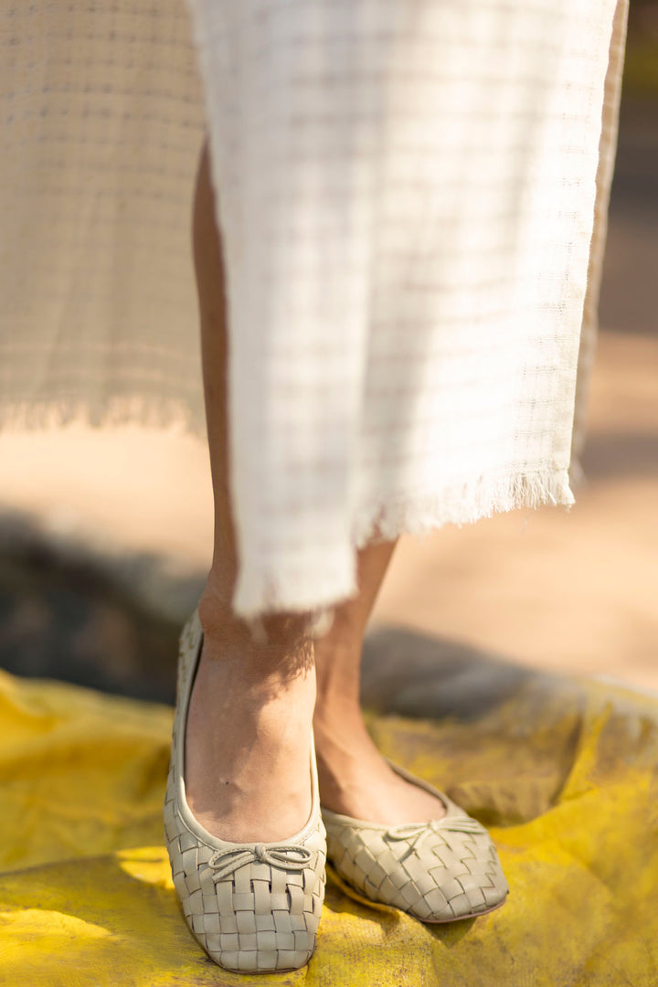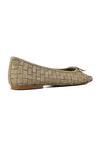 Delicate and effortlessly charming. This woven ballerina features a rounded toe and a subtle bow detail in pistachio green & beige, blending texture and soft femininity for an understated, versatile look.